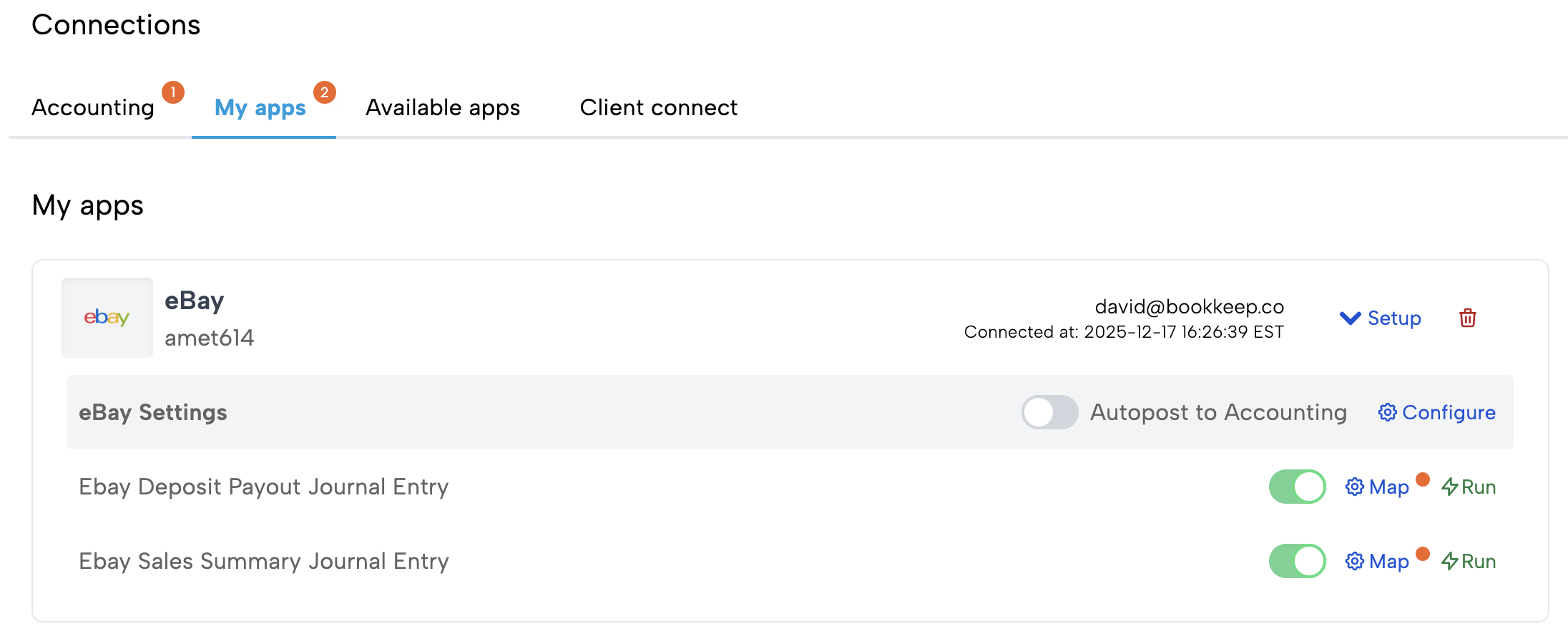 With Auto-Post turned off, entries will still be created in Bookkeep—but they will not post to your accounting platform until you manually approve them.