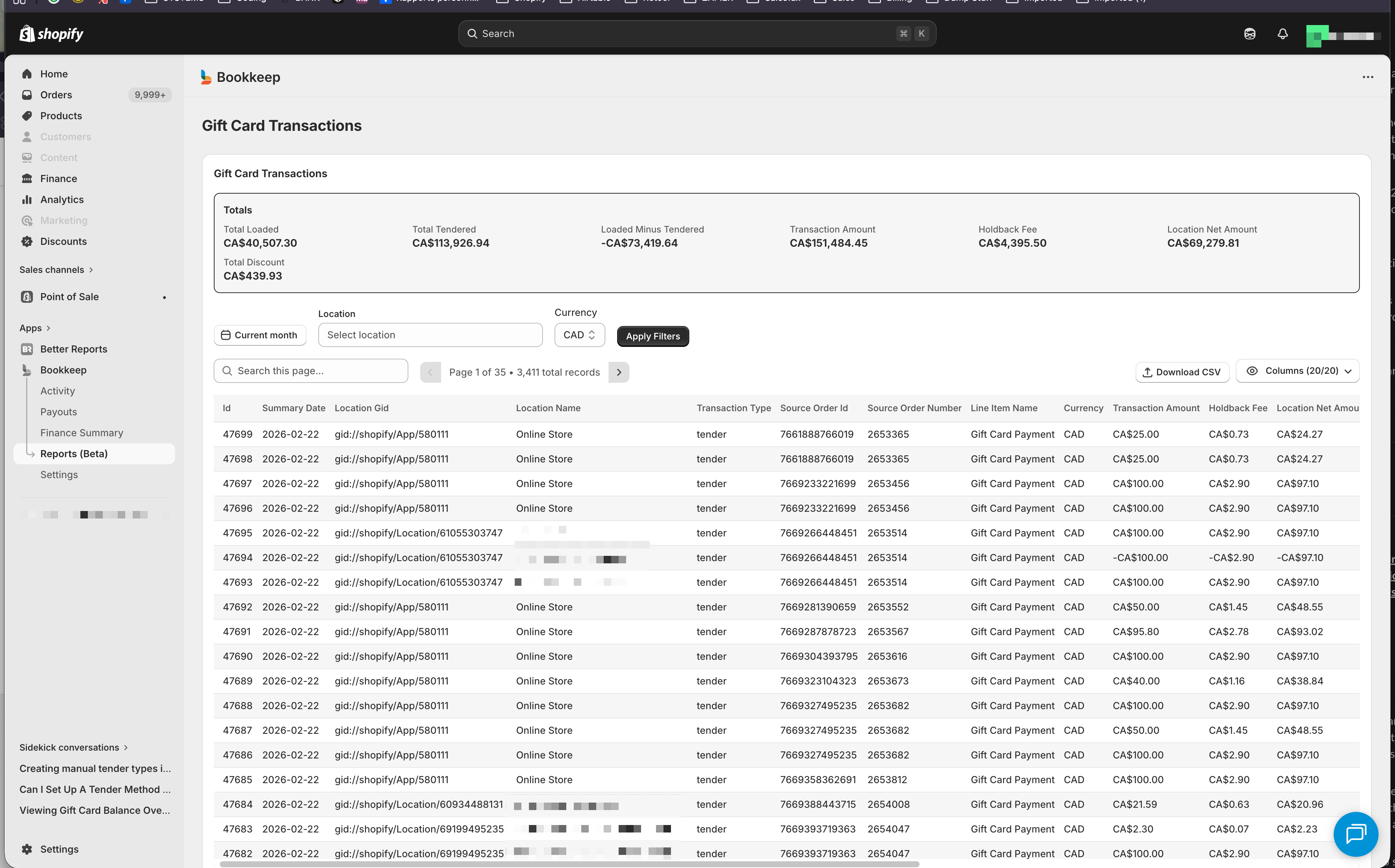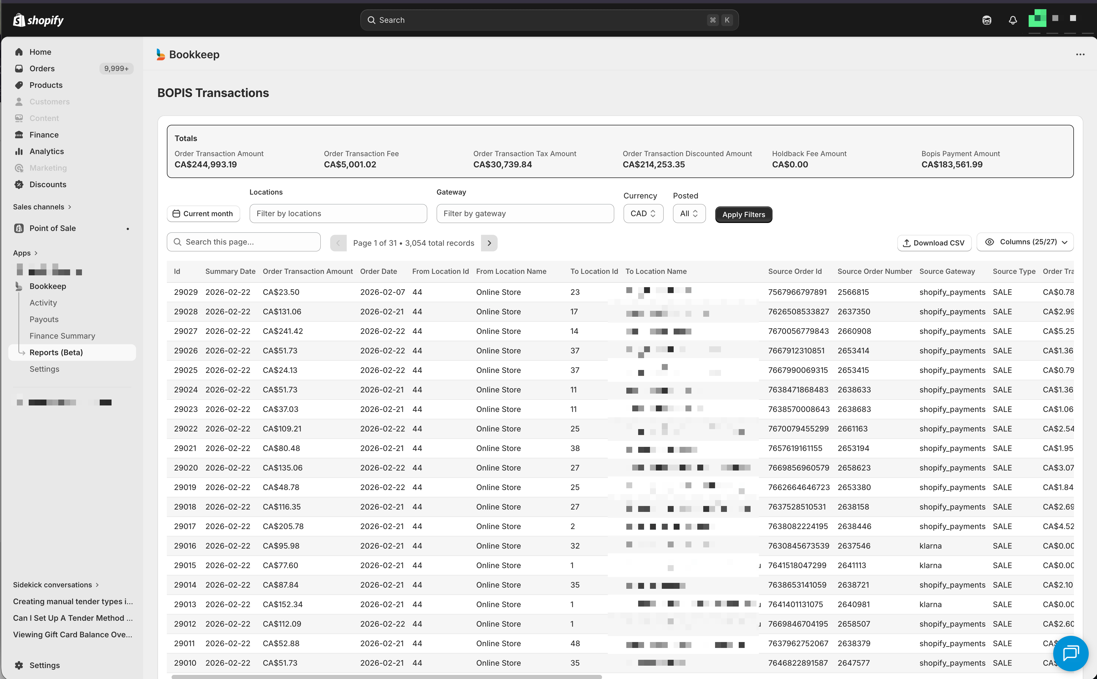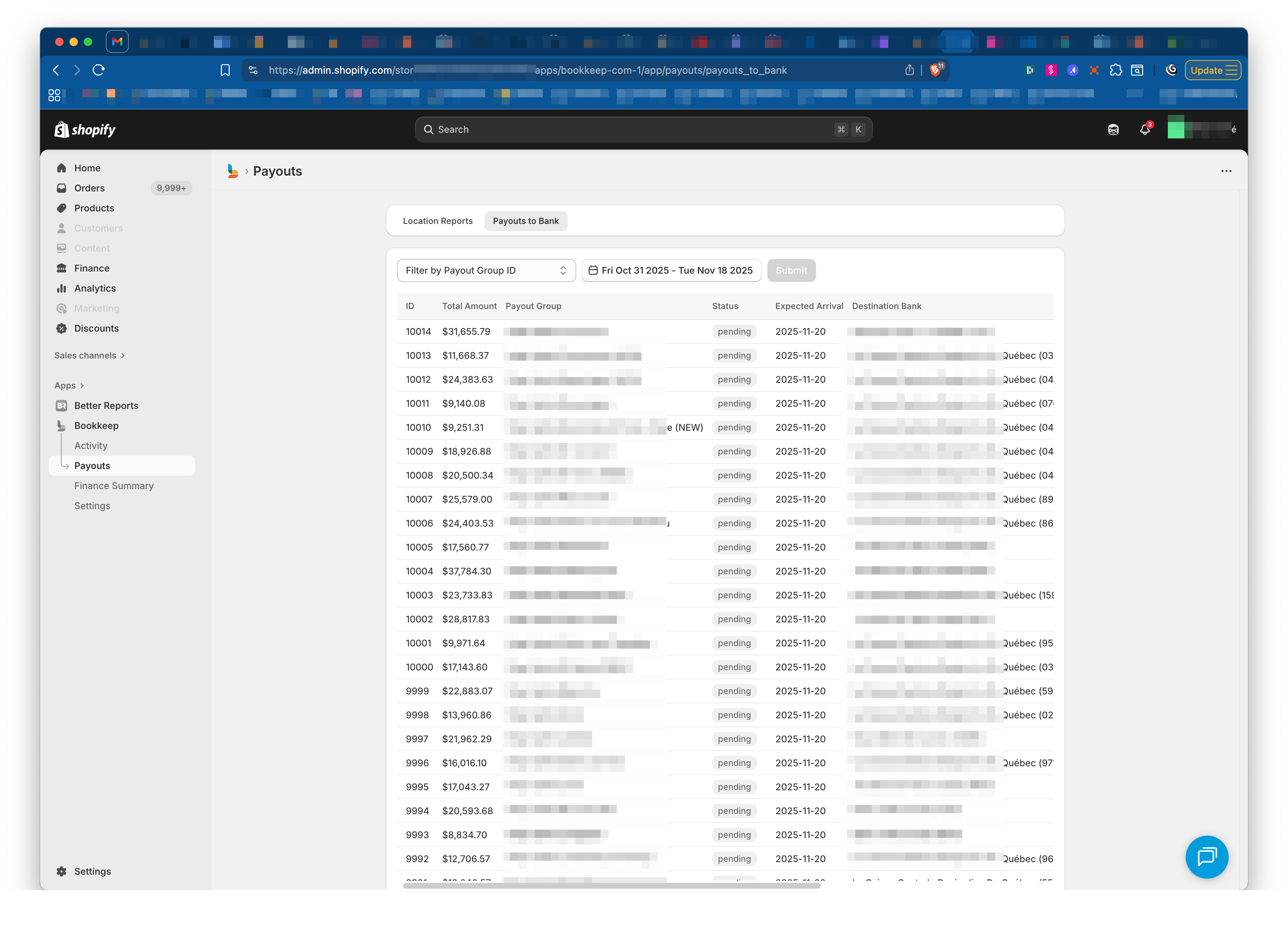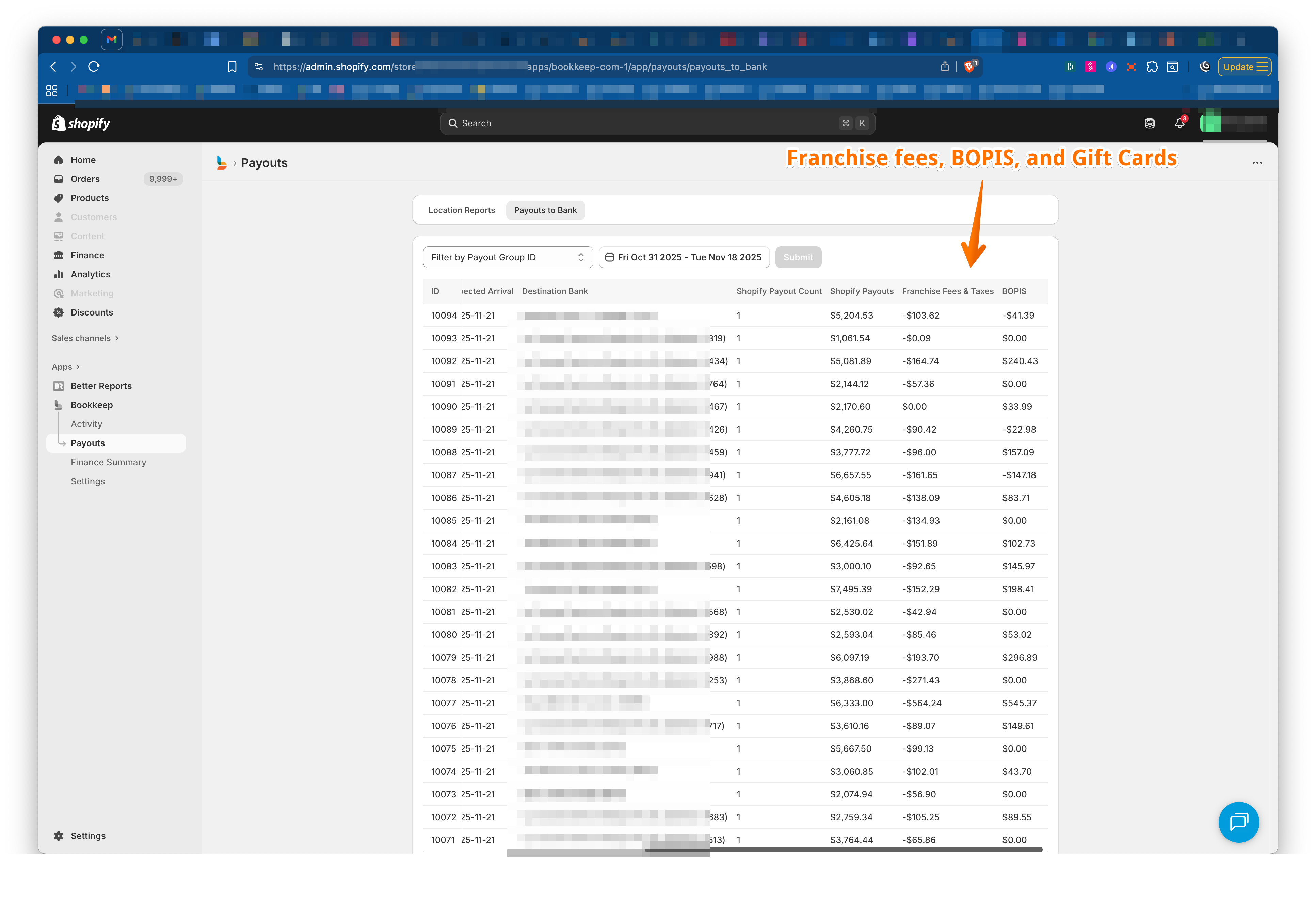 For the corporate group overseeing all payouts to franchise owners or within your corporate group we have detailed payout reporting in the Bookkeep app as well as in our Shopify Embedded app.