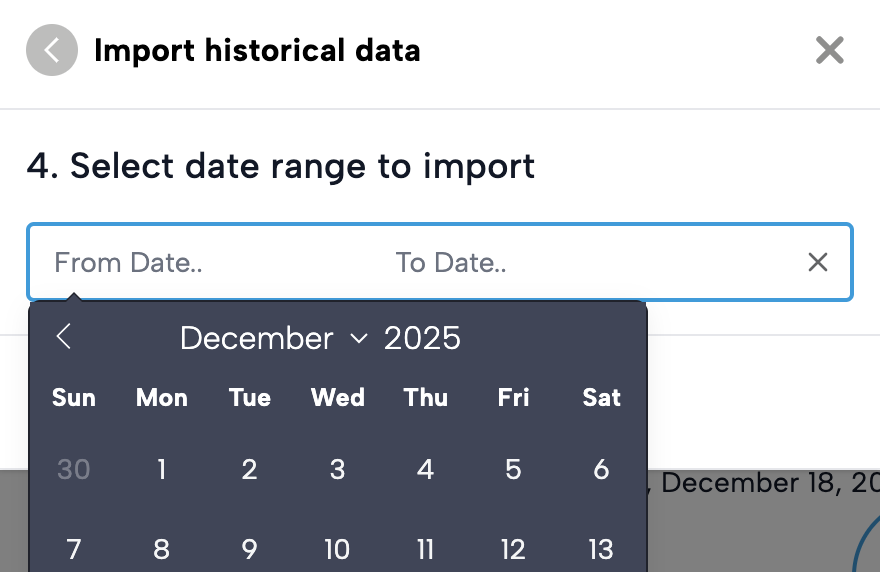 The “Import Dates” button discussed below can be used for more than just importing historical data. Customers can also use this feature to refresh entries in bulk. This functionality is especially important for customers who want to migrate or re-sync updated data from their source apps to their accounting platforms.